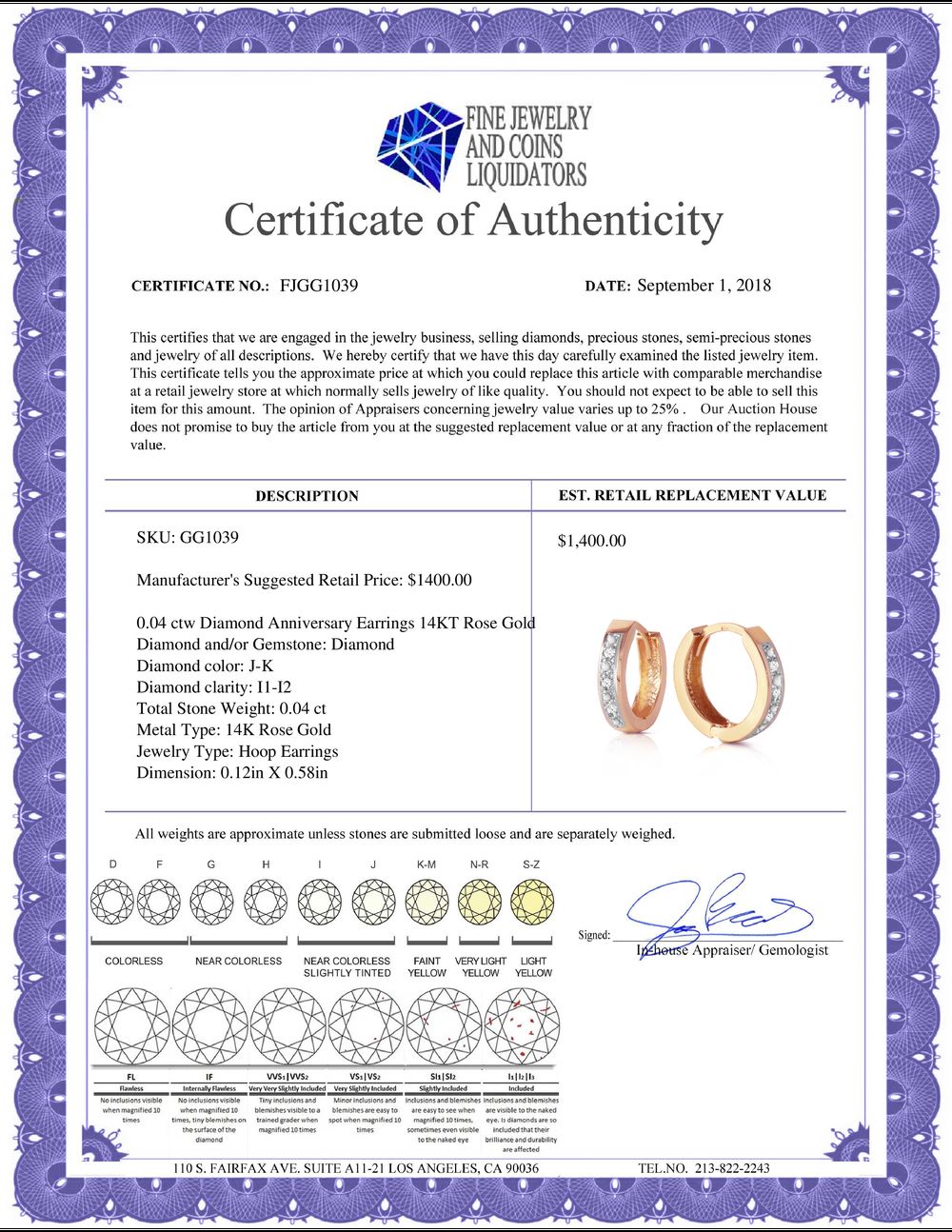 REF-45H8X - SKU: GG1039 ---- Genuine 0.04 ctw Diamond Anniversary Earrings 14KT Rose Gold