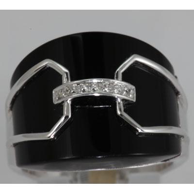 Gemstone: Diamond & Black Enamel ; Diamond Count 1: 7RD ; Diamond Weight: 0.04 ; Gemstone Color: Black14KT ; Metal: Gold-White ; Ring Size: 7.5