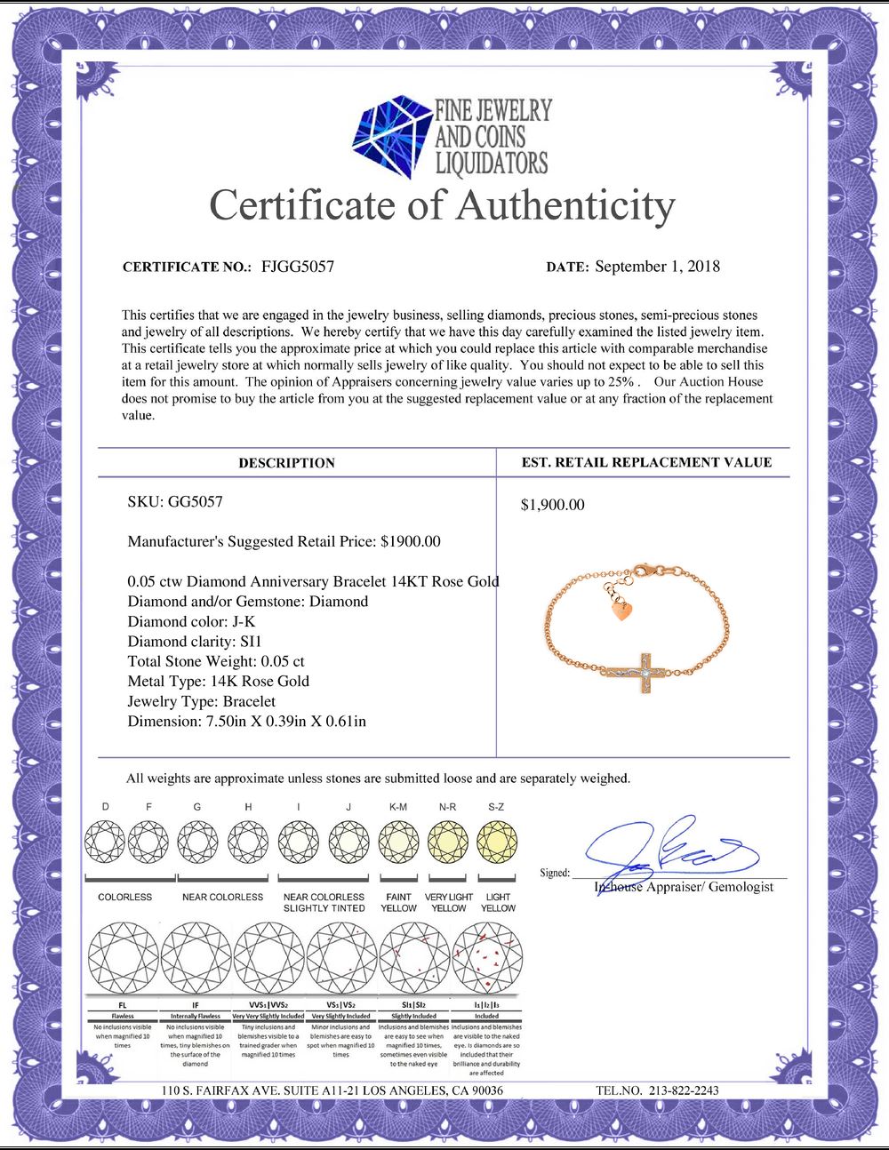 REF-61N8R - SKU: GG5057 ---- Genuine 0.05 ctw Diamond Anniversary Bracelet 14KT Rose Gold