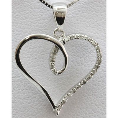 Genuine 0.06 ctw Diamond Heart Pendant 14k W Gold **|**|** Total CTW: 0.06 ; Style: Pendant ; Diamond Count 1: 21 round cut ; Weight(g): 1.27 ; Metal Purity: 14k White Gold; Availability: 3-10 Business days, ready to ship, with certification of appraisal will take 2 weeks. ; MSRP: $1072