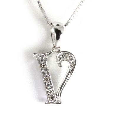 Genuine 0.06 ctw Letter V Diamond Necklace 16" 14kt **|**|** Diamond Clarity: SI1-SI-I ; Diamond Color: G-H ; Metal: 14KT ; Gold: White Gold ; Gold Weight: 0.91 ; Diamond Count: 11RD ; Diamond Weight: 0.06 ; Diamond Count 2: N/A ; Diamond Weight 2: N/A ; Gemstone Count: N/A ; Availability: 3-10 Business days, ready to ship, with certification of appraisal will take 2 weeks. ; MSRP: $557