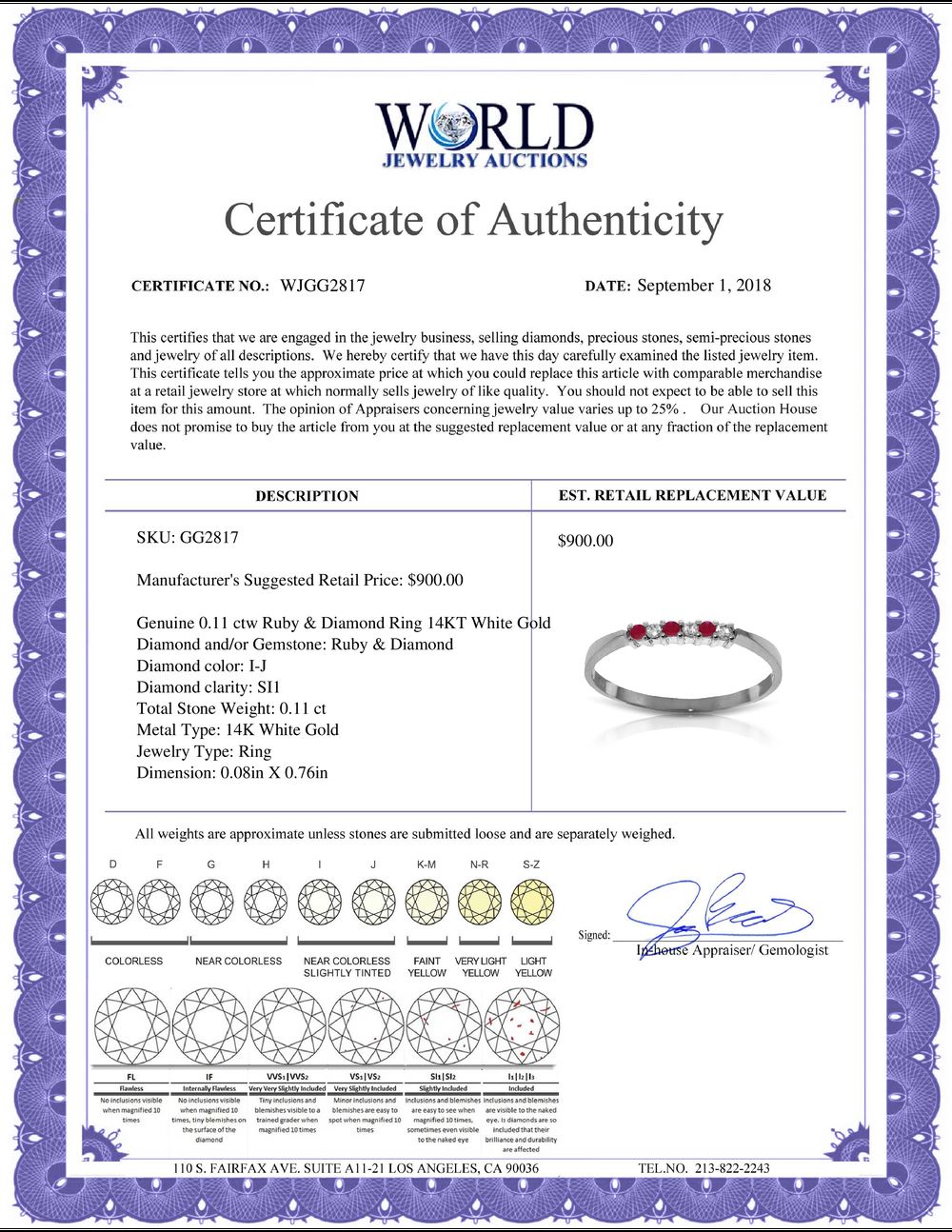REF-27W5Y - SKU: GG2817 ---- Genuine 0.11 ctw Ruby & Diamond Ring 14KT White Gold