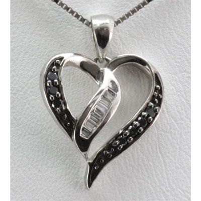 Genuine 0.12 ctw Round Diamond Heart Pendant 18k **|**|** Total CTW: 1.59 ; Jewelry Type: Pendant7 black RD, 7 baguettes ; Weight(g): 1.59 ; Metal Purity: 18k White Gold ; MSRP: $649