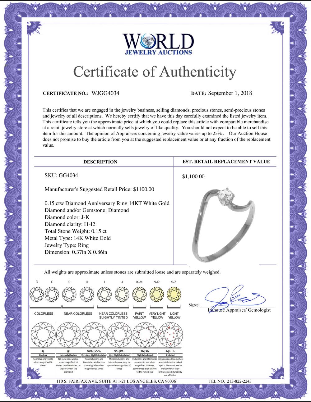 WORLD JEWELRY AUCTION believes to the best of its knowledge that the information presented in any listing has come from reliable sources. Such information is presented solely for the convenience of the Purchaser. WJA makes no warranties of any kind related to the information presented in any listing. WJA further makes no warranties, either express or implied, relating to the value, marketability or condition of the lot described in any listing. Prospective bidders should investigate a lot thoroughly before bidding. By bidding the Bidder acknowledges that Bidder has investigated the lot to his or her satisfaction, or, that Bidder has chosen not to do so, and agrees to accept the lot being bid on with no objections after the sale closes. If you are uncertain please contact us with your questions prior to bidding. If you are still uncertain after we reply, please refrain from bidding. Photos other graphic material contained in any listing of generic or duplicate lots may be stock presentations and not necessarily of the specific lot.