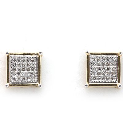 Genuine 0.15 ctw Diamond Square Invisible Earring 14k **|**|** Main Stone: White Diamond ; Cut Style: Invisible ; Total Carat Weight: 0.15; Jewelry Style: Square Invisible ; Metal Purity: 14K ; Metal: Yellow Gold ; Total Weight(G): 1.84; Availability: 3-10 Business days, ready to ship, with certification of appraisal will take 2 weeks. ; MSRP: $900