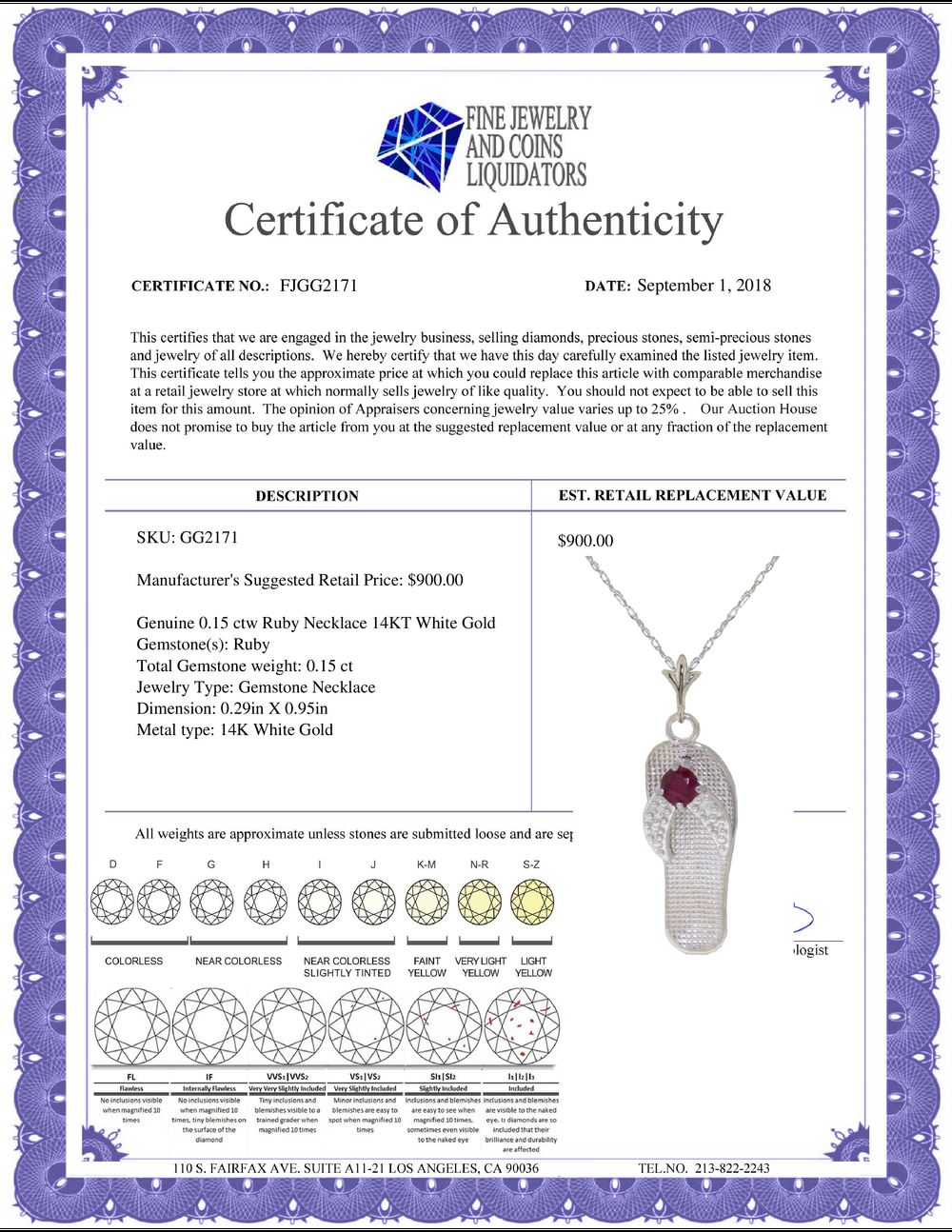 REF-27X4M - SKU: GG2171 ---- Genuine 0.15 ctw Ruby Necklace 14KT White Gold