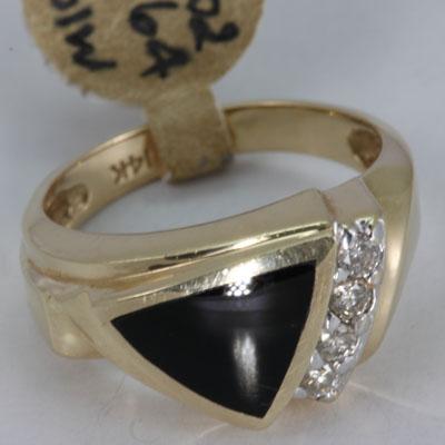 Gemstone: Diamond & Black Enamel ; Diamond Count 1: 4RD ; Diamond Weight: 0.18 ; Gemstone Color: Black14KT ; Metal: Gold-Yellow ; Ring Size: 7.5