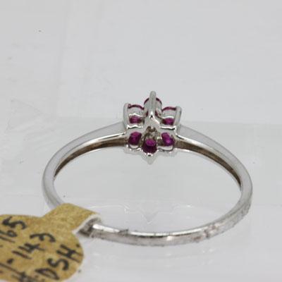 Gemstone: Ruby ; Gemstone Weight: 0.17 ; Diamond Count: 1RD ; Diamond Weight: 0.02; Metal Purity: 14KT ; Metal: White Gold ; Ring Size: 6.5