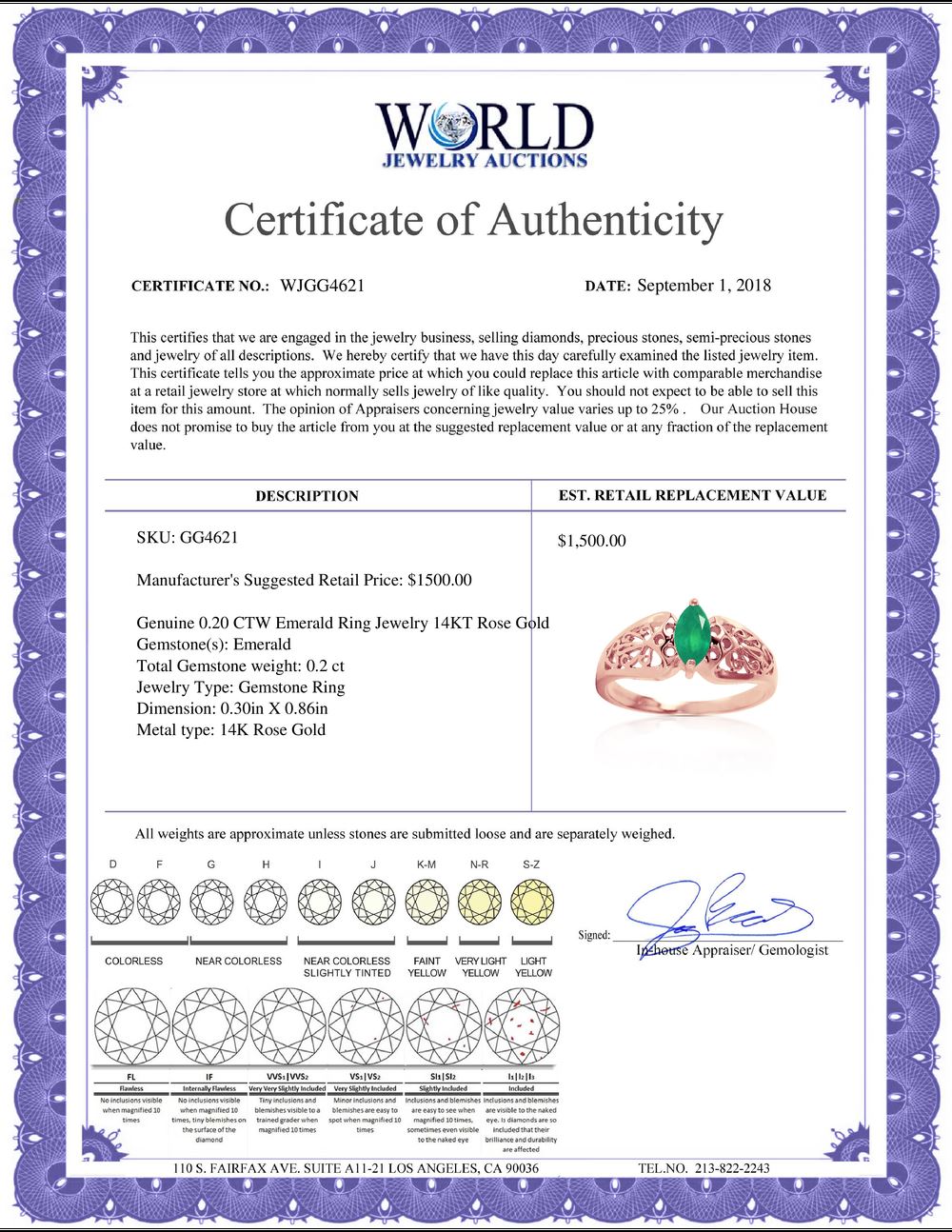 REF-48Z4N - SKU: GG4621 ---- Genuine 0.20 CTW Emerald Ring 14KT Rose Gold