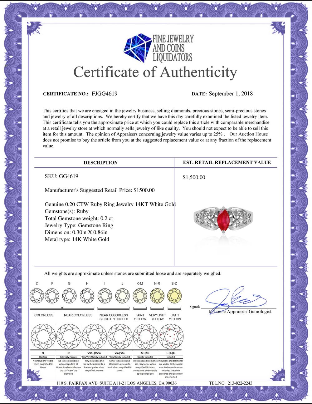 REF-48F4Z - SKU: GG4619 ---- Genuine 0.20 CTW Ruby Ring 14KT White Gold