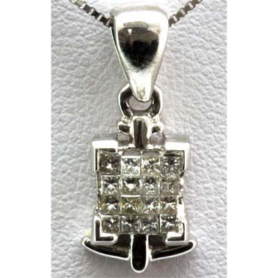 Genuine 0.22 ctw Diamond Invisible Anchor Pendant 18k **|**|** Total CTW: 0.22 ; Style: Pendant ; Diamond Count 1: 16 square cut ; Weight(g): 1.87 ; Metal Purity: 18k White Gold; Availability: 3-10 Business days, ready to ship, with certification of appraisal will take 2 weeks. ; MSRP: $776