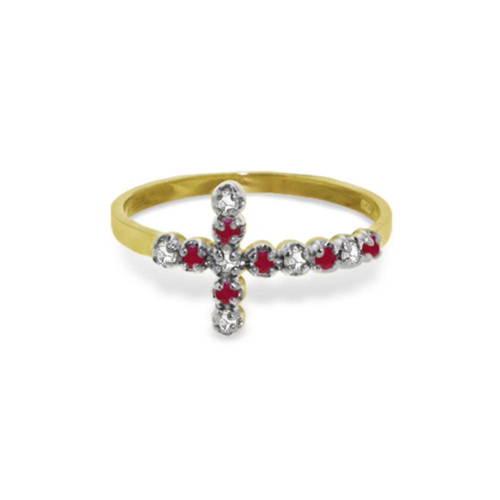 Genuine 14K Yellow Gold 0.24 ctw Ruby & Diamond Ring