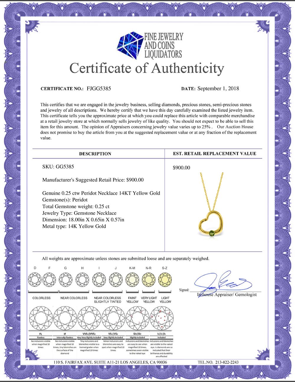 REF-29A2K - SKU: GG5385 ---- Genuine 0.25 ctw Peridot Necklace 14KT Yellow Gold