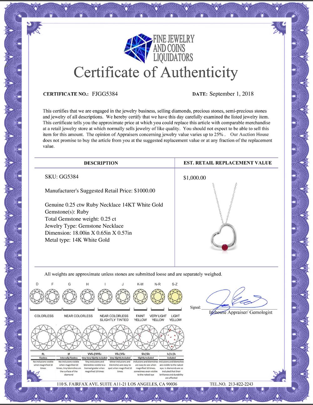 REF-30A5K - SKU: GG5384 ---- Genuine 0.25 ctw Ruby Necklace 14KT White Gold
