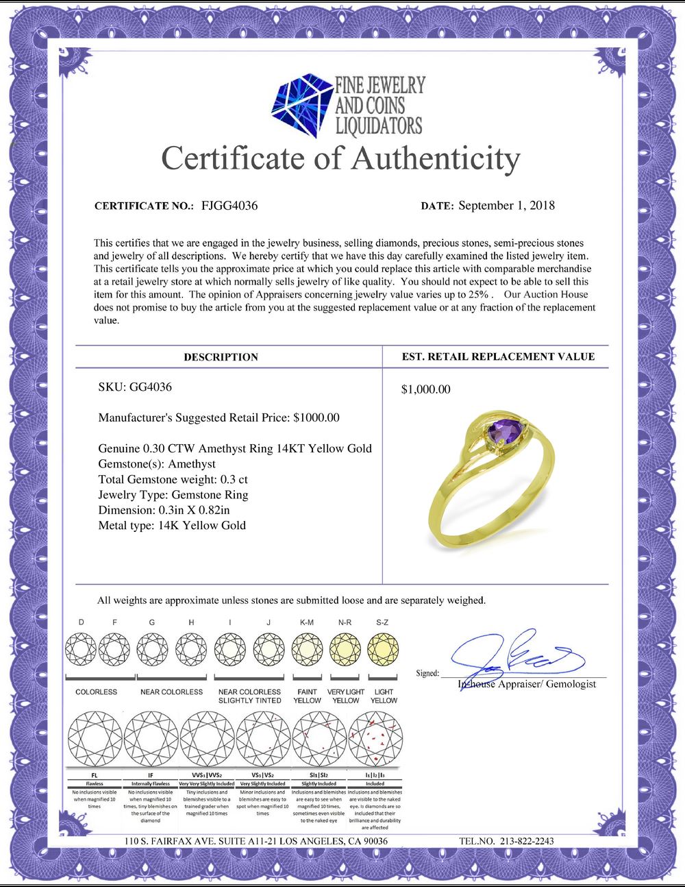REF-30V5W - SKU: GG4036 ---- Genuine 0.30 CTW Amethyst Ring 14KT Yellow Gold