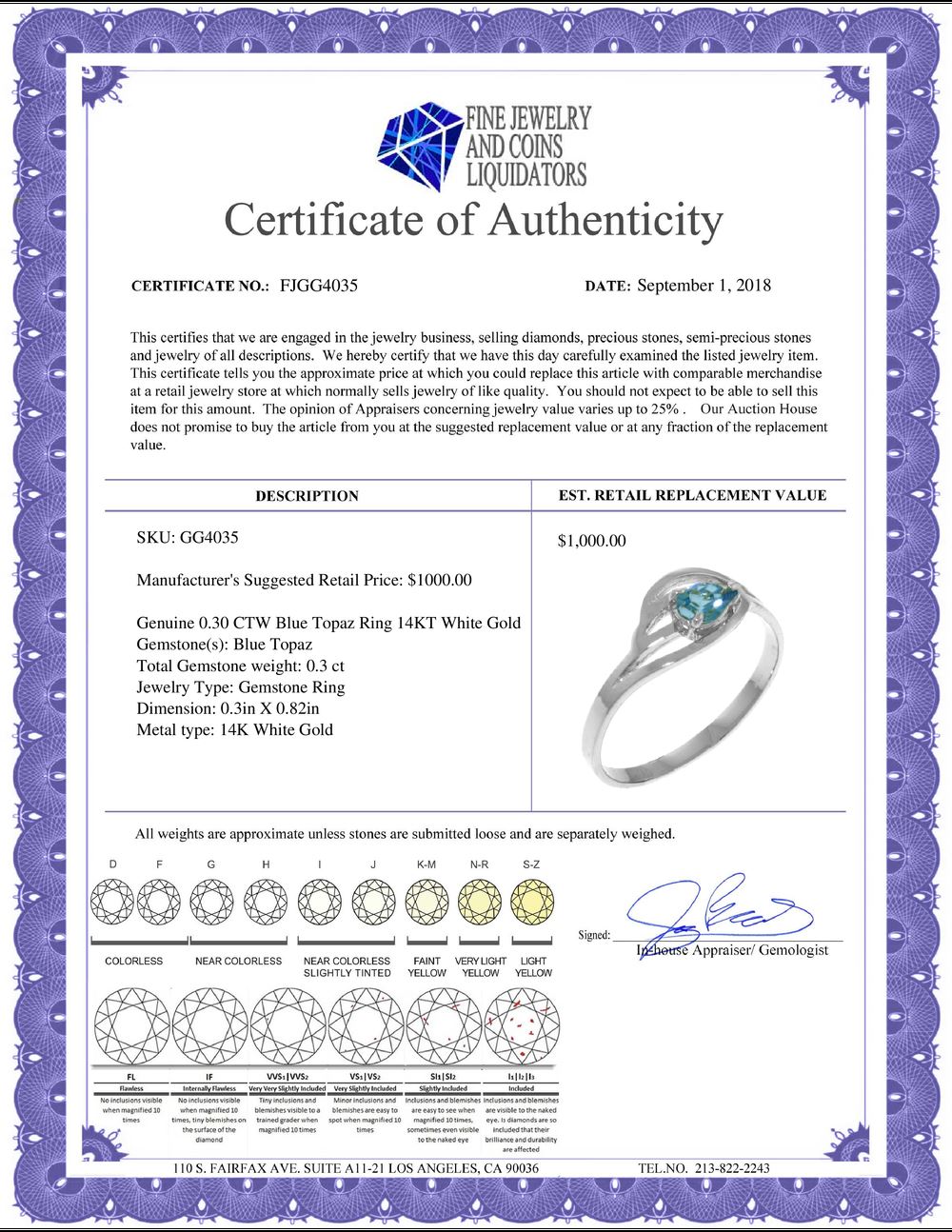 All Gia and EGL Diamonds are subject to availability due to consignors’ terms with us.