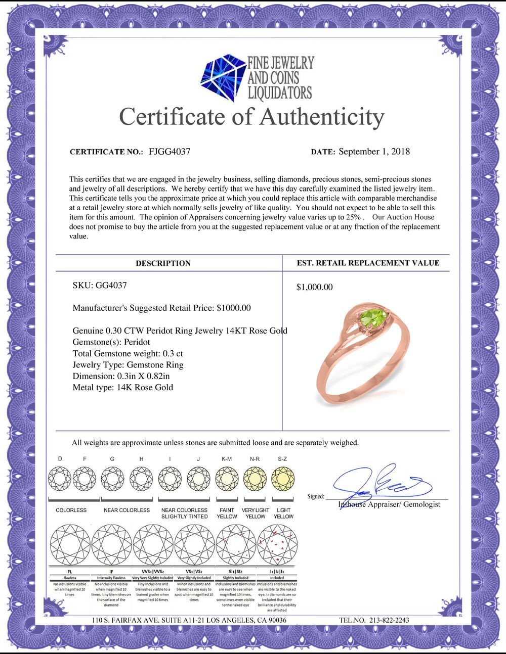 REF-30F5Z - SKU: GG4037 ---- Genuine 0.30 CTW Peridot Ring 14KT White Gold