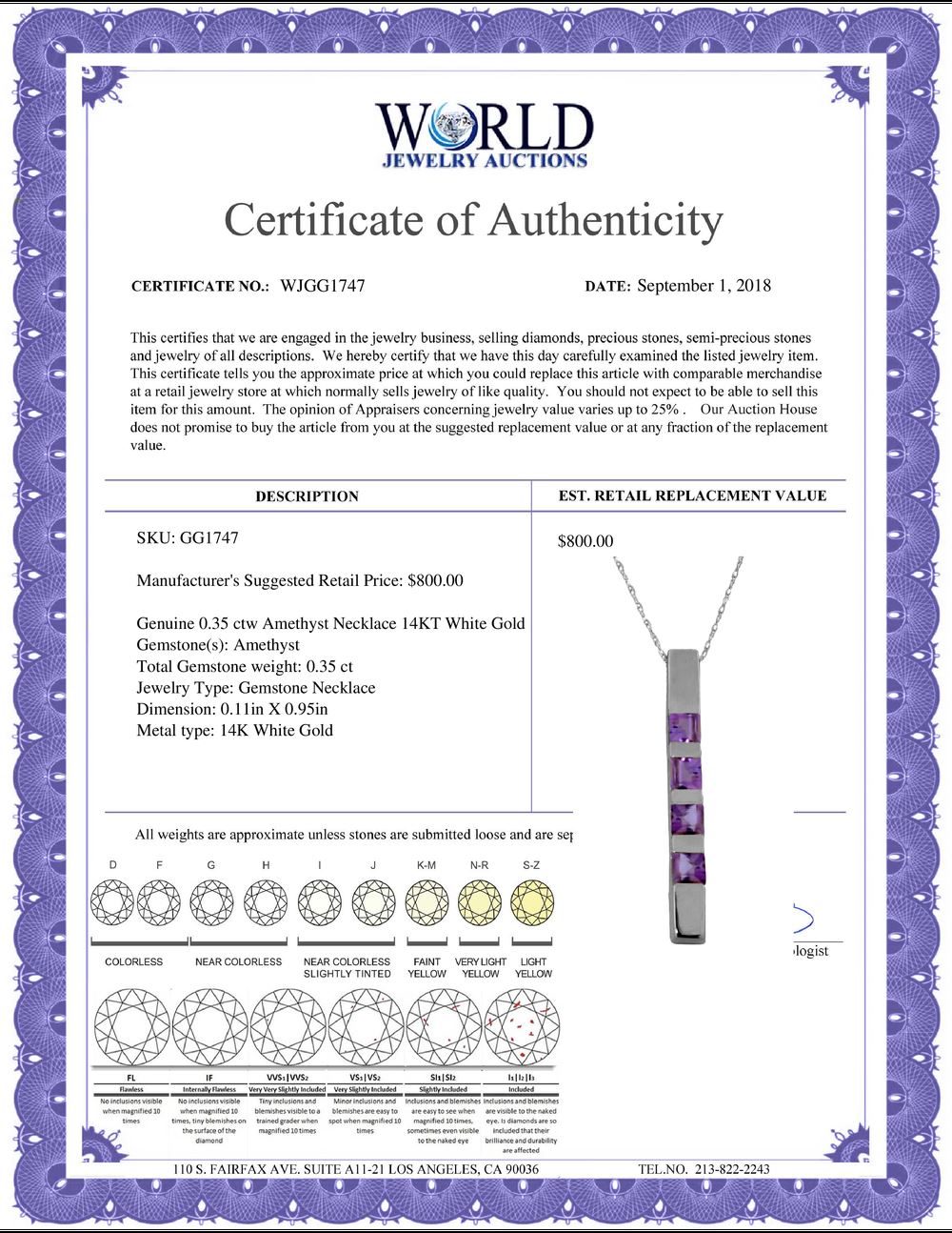 REF-26N6R - SKU: GG1747 ---- Genuine 0.35 ctw Amethyst Necklace 14KT White Gold