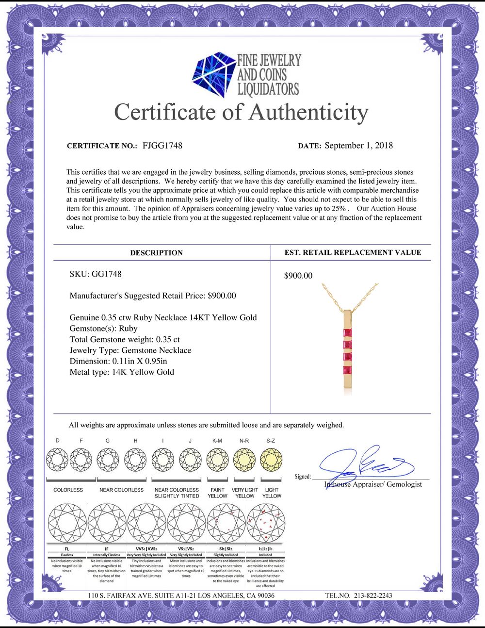 REF-27V5W - SKU: GG1748 ---- Genuine 0.35 ctw Ruby Necklace 14KT Yellow Gold