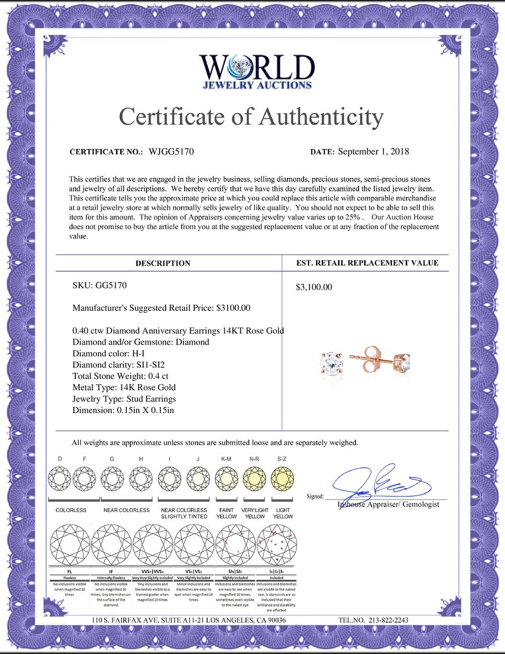 REF-102A9K - SKU: GG5170 ---- Genuine 0.40 ctw Diamond Anniversary Earrings 14KT Rose Gold