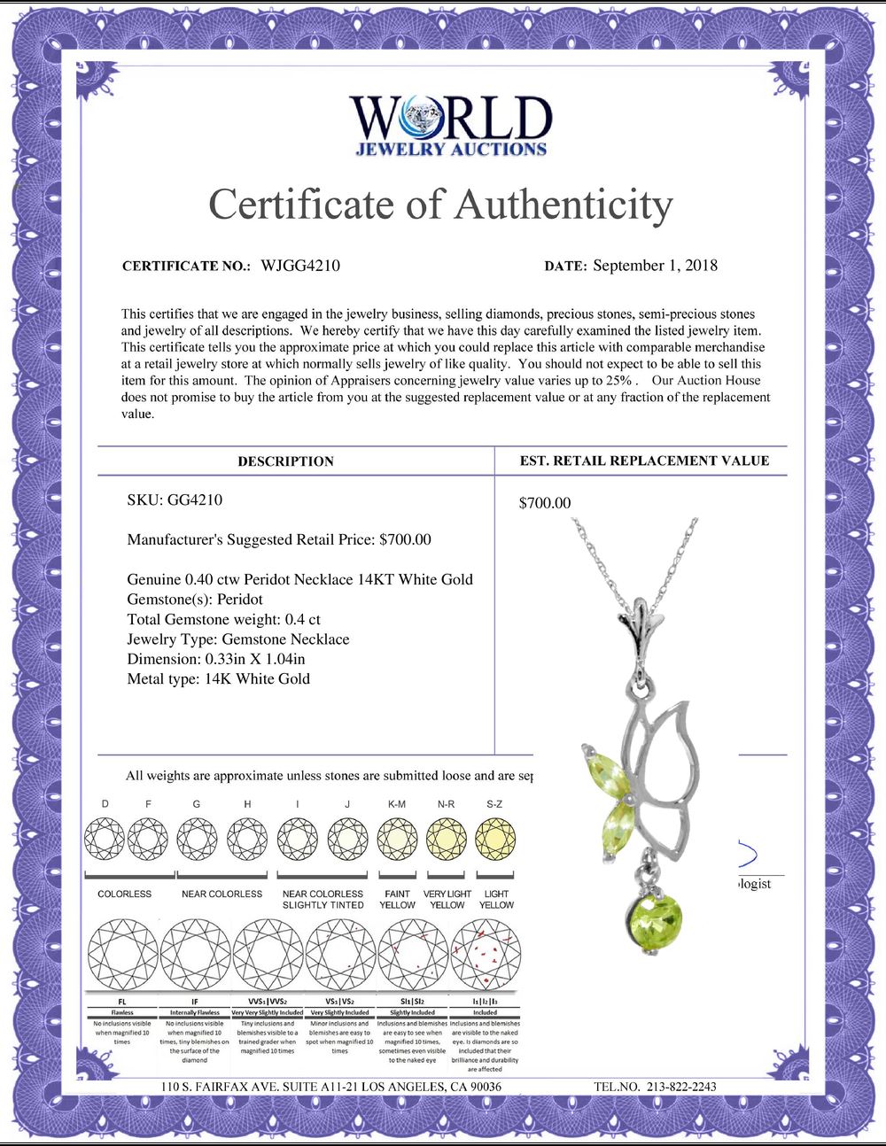 REF-22V2W - SKU: GG4210 ---- Genuine 0.40 ctw Peridot Necklace 14KT White Gold