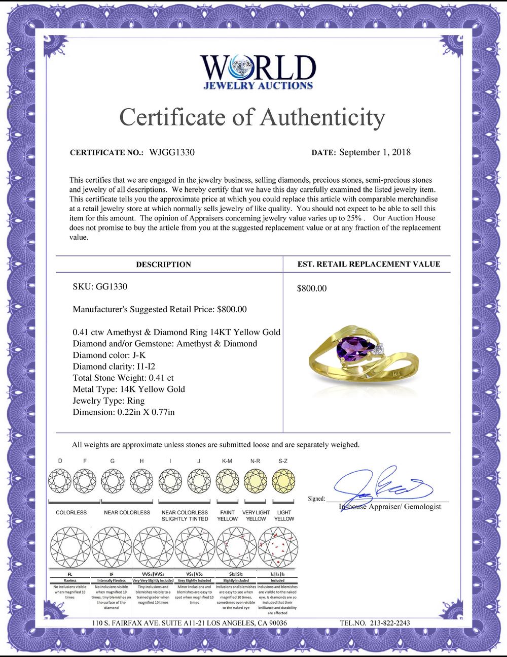 Genuine 14K Yellow Gold 0.41 ctw Amethyst & Diamond Ring