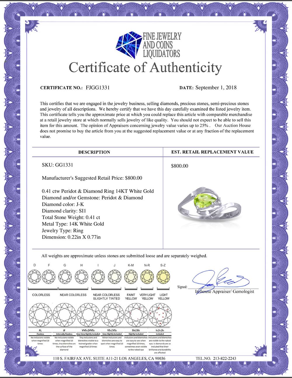 REF-26H6X - SKU: GG1331 ---- Genuine 0.41 ctw Peridot & Diamond Ring 14KT White Gold