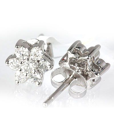 Genuine 0.43 ctw Flower Design Diamond Earring 14kt **|**|** Diamond Clarity: SI1-SI2 ; Diamond Color: G-H ; Metal: 14KT ; Gold: White Gold ; Gold Weight: 1.92 ; Diamond Count: 14RD ; Diamond Weight: 0.43 ; Diamond Count 2: N/A ; Diamond Weight 2: N/A ; Gemstone Count: N/A ; Availability: 3-10 Business days, ready to ship, with certification of appraisal will take 2 weeks. ; MSRP: $890