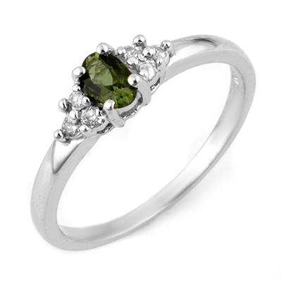 Diamond: 6 Round cut @ 0.11 ctw Clarity: SI-I Color: H-K Gemstone: Natural Tourmaline Gemstone color: Green Gemstone quality: Good-to-Very Good Gemstone Cut & Weight: 1 Oval cut @ 0.33 ctw Metal Purity & Color : 10K Gold-White Gold weight: 2.40 grams Ring size (US): 7 Dimension: Approx. 3/16" x 3/8" Consignor: World Jewelry Outlet Delivery: Within 10 business days