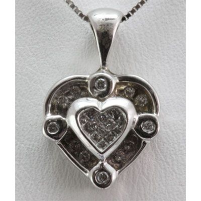 Genuine 0.44 ctw Round Cut Diamond Heart Pendant 10k **|**|** Total CTW: 0.44 ; Jewelry Type: Pendant12 roun cut, 13 square cut ; Weight(g): 3.07 ; Metal Purity: 10k White Gold ; MSRP: $1164