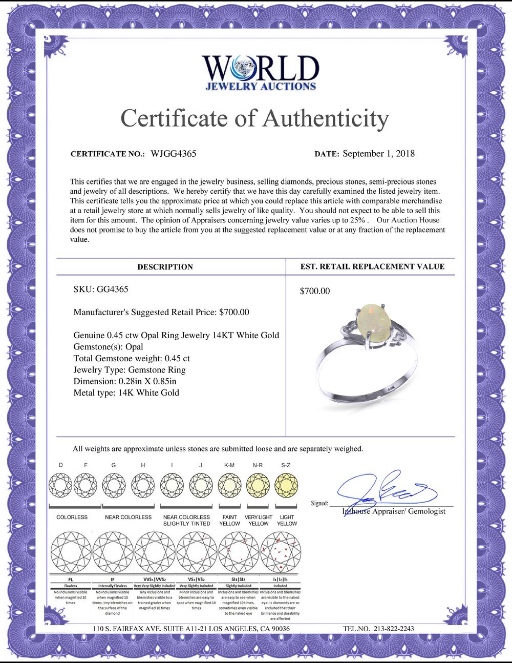 REF-21T9A - SKU: GG4365 ---- Genuine 0.45 ctw Opal Ring 14KT White Gold