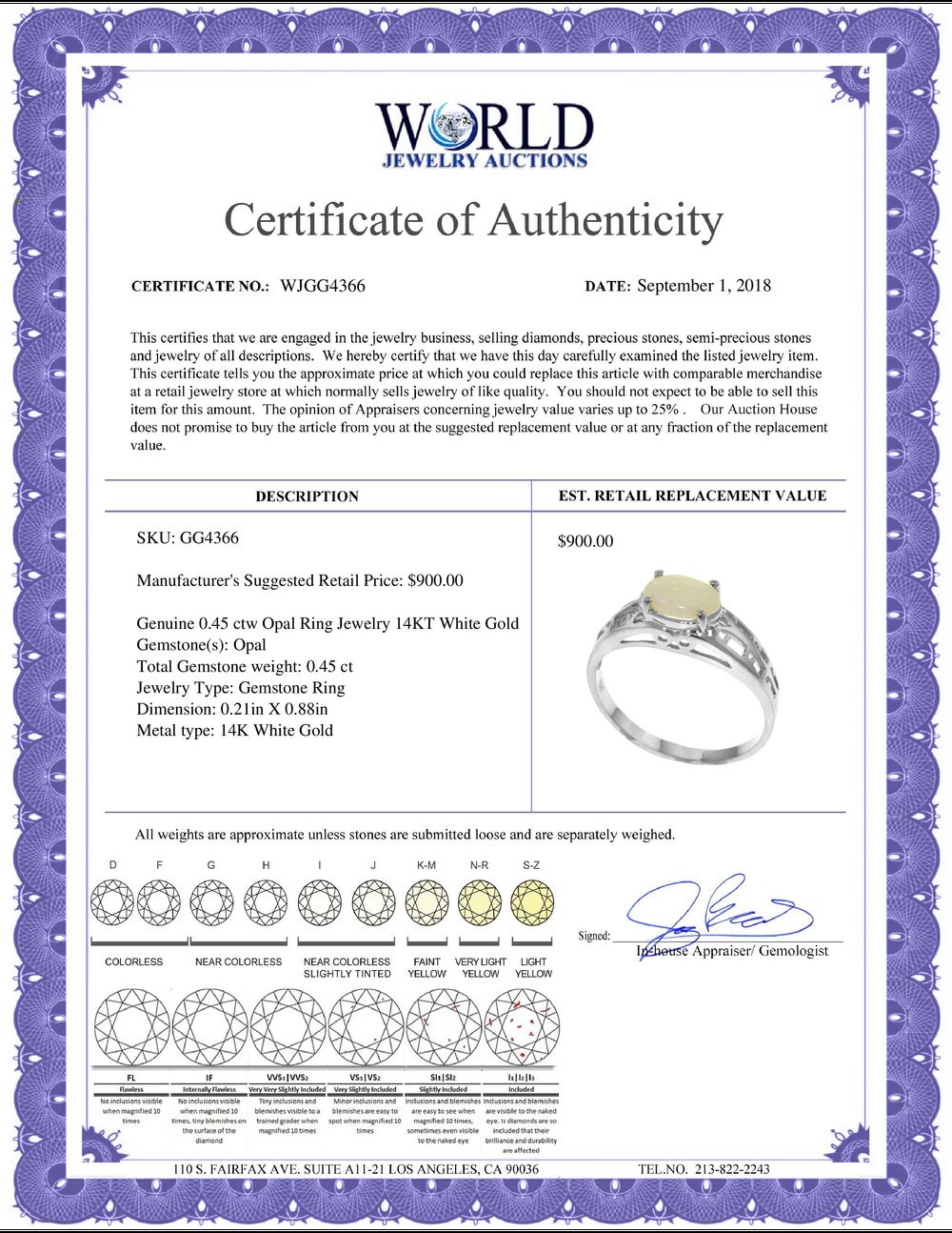 REF-29M7T - SKU: GG4366 ---- Genuine 0.45 ctw Opal Ring 14KT White Gold