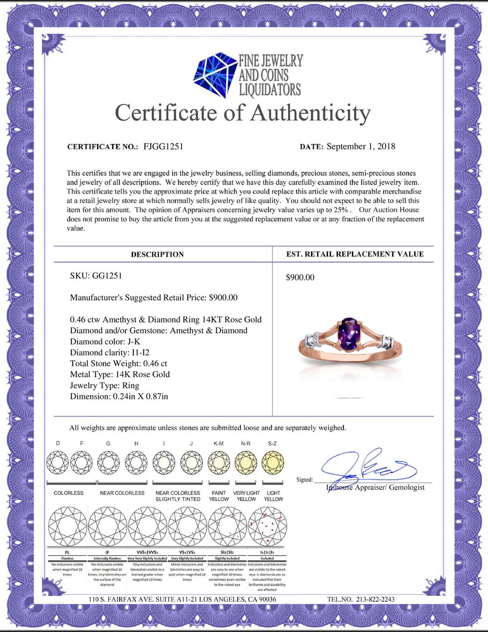 All Gia and EGL Diamonds are subject to availability due to consignors’ terms with us.