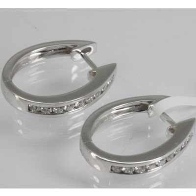 Genuine 0.47 ctw Diamond Earring 18KT White Gold **|**|** Gold Weight(g): 5.71; Diamond Count: 18RD ; Diamond Weight: 0.47 ; Diamond Count 2: N/A ; Diamond Weight 2: N/A ; Gemstone Cut & Weight: N/A ; Gemstone Count 1: N/A ; Gemstone Weight 1: N/A ; Gemstone: N/A ; Total Weight: 0.47 ; Carat: 18KT ; Metal: White; Availability: 3-10 Business days, ready to ship, with certification of appraisal will take 2 weeks. ; MSRP: $2127