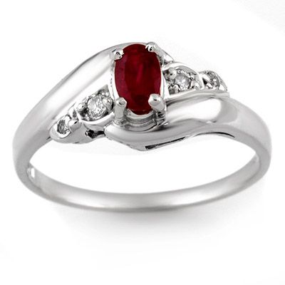Genuine 0.49 ctw Ruby & Diamond Ring 10K White Gold - Retails for $610 ---- Diamond: 4 Round cut @ 0.09 ctw---- Clarity: SI-I---- Color: H-K----Gemstone: Natural Ruby----Gemstone color: Red----Gemstone quality: Good-to-Very Good----Gemstone Cut & Weight: 1 Oval cut @ 0.40 ctw----Metal Purity & Color : 10K Gold-White----Gold weight: 2.40 grams----Ring size (US): 6.25----Dimension: Approx. 3/16 x 1/4--------Shipping: Within 15 business days