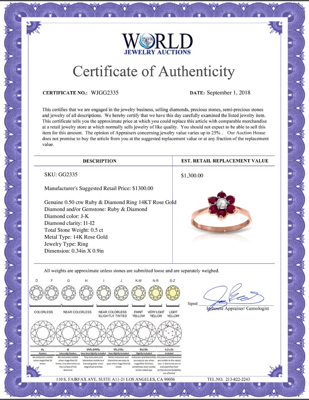 Genuine 14K Rose Gold 0.50 ctw Ruby & Diamond Ring