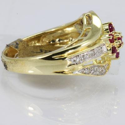 Gemstone: Ruby ; Gemstone Shape: ROUND ; Gemstone Weight: 0.39 ; Diamond Count: 17RD ; Diamond Weight: 0.11; Metal Purity: 14KT ; Metal: Yellow Gold ; Ring Size: 6.5