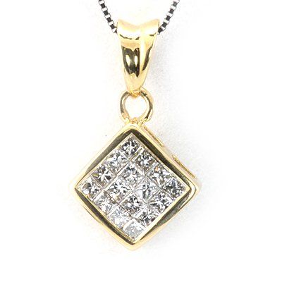 Genuine 0.52ctw Diamond Square Necklace 14K Yellow Gold **|**|** Main Stone: White Diamond ; Cut Style: Invisible ; Total Carat Weight: 0.52; Jewelry Style: Square ; Metal Purity: 14K ; Metal: Yellow Gold; Dimension: 16\" ; Total Weight(G): 2.04; Availability: 3-10 Business days, ready to ship, with certification of appraisal will take 2 weeks. ; MSRP: $2300