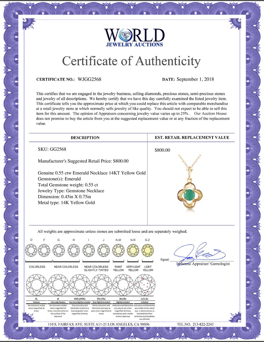 REF-25H4X - SKU: GG2568 ---- Genuine 0.55 ctw Emerald Necklace 14KT Yellow Gold