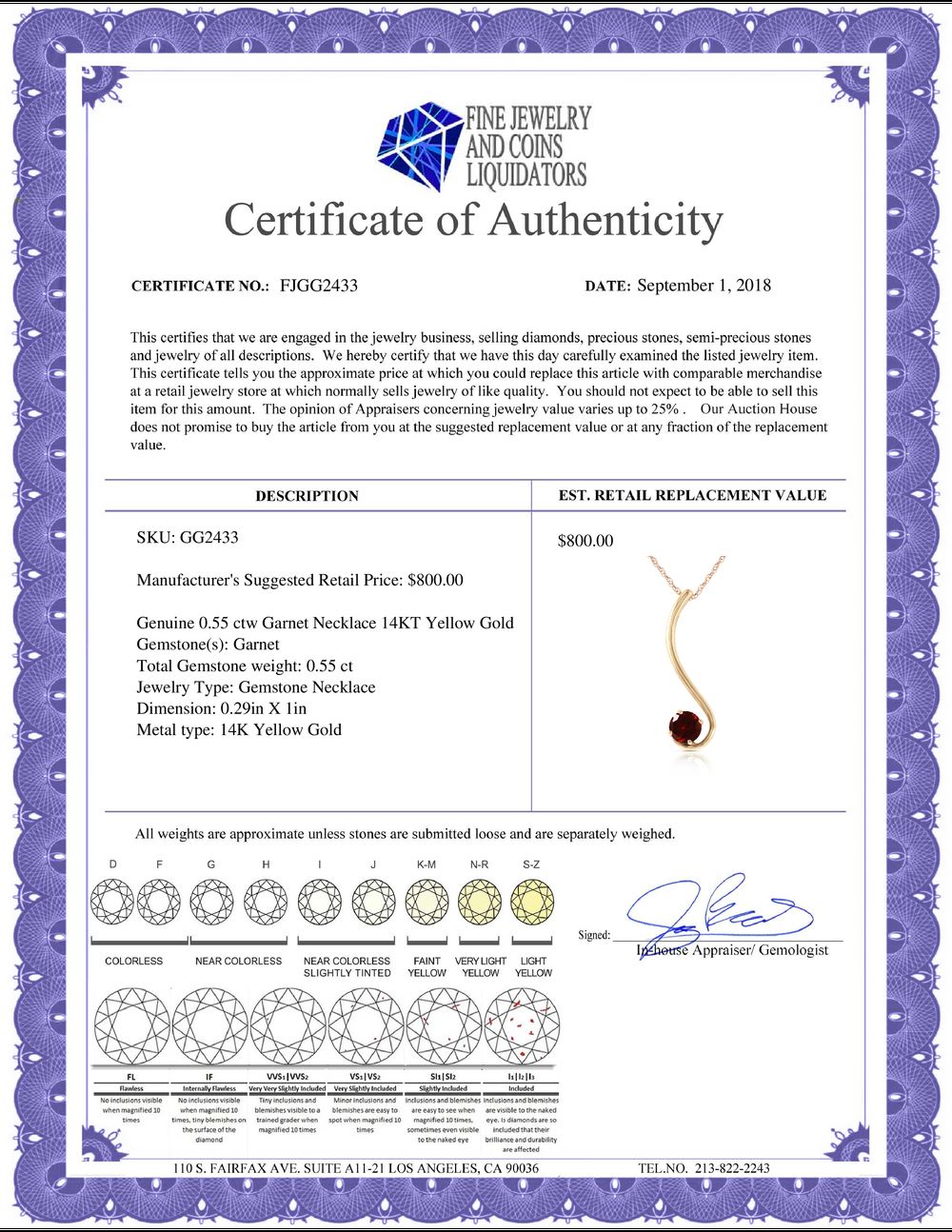 REF-26F2Z - SKU: GG2433 ---- Genuine 0.55 ctw Garnet Necklace 14KT Yellow Gold