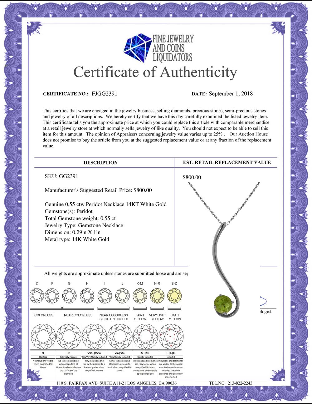 REF-26K2V - SKU: GG2391 ---- Genuine 0.55 ctw Peridot Necklace 14KT White Gold