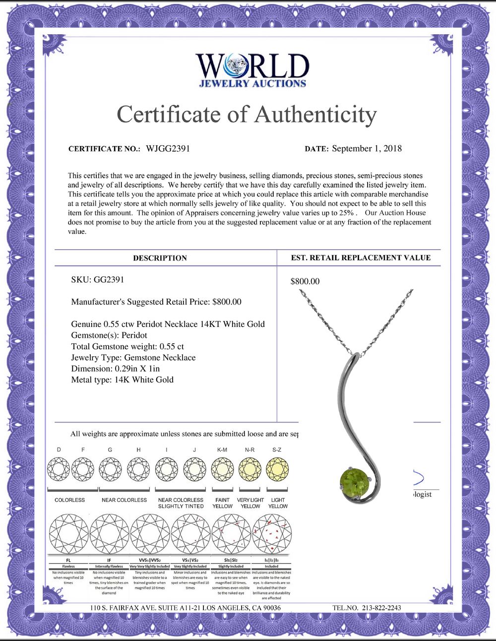 REF-26K2V - SKU: GG2391 ---- Genuine 0.55 ctw Peridot Necklace 14KT White Gold