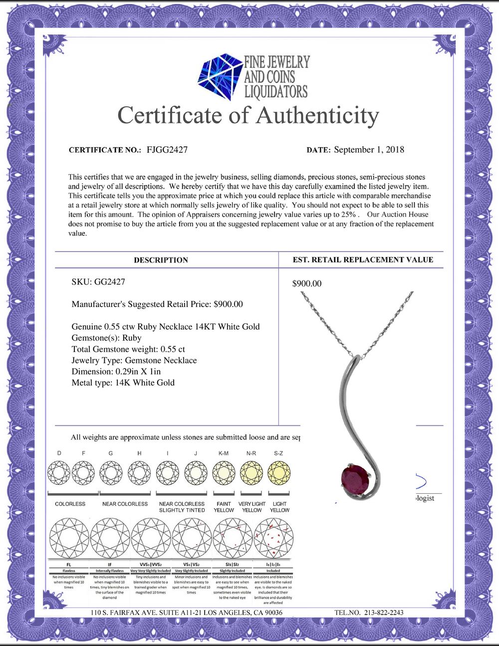 REF-28F3Z - SKU: GG2427 ---- Genuine 0.55 ctw Ruby Necklace 14KT White Gold