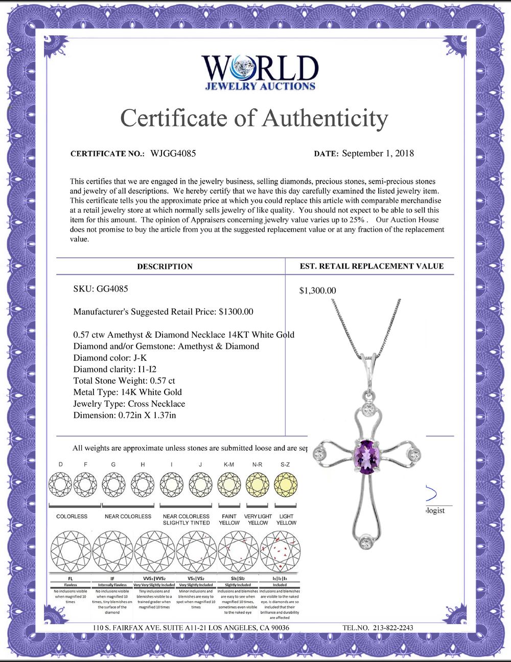 REF-40P8H - SKU: GG4085 ---- Genuine 0.57 ctw Amethyst & Diamond Necklace 14KT Rose Gold