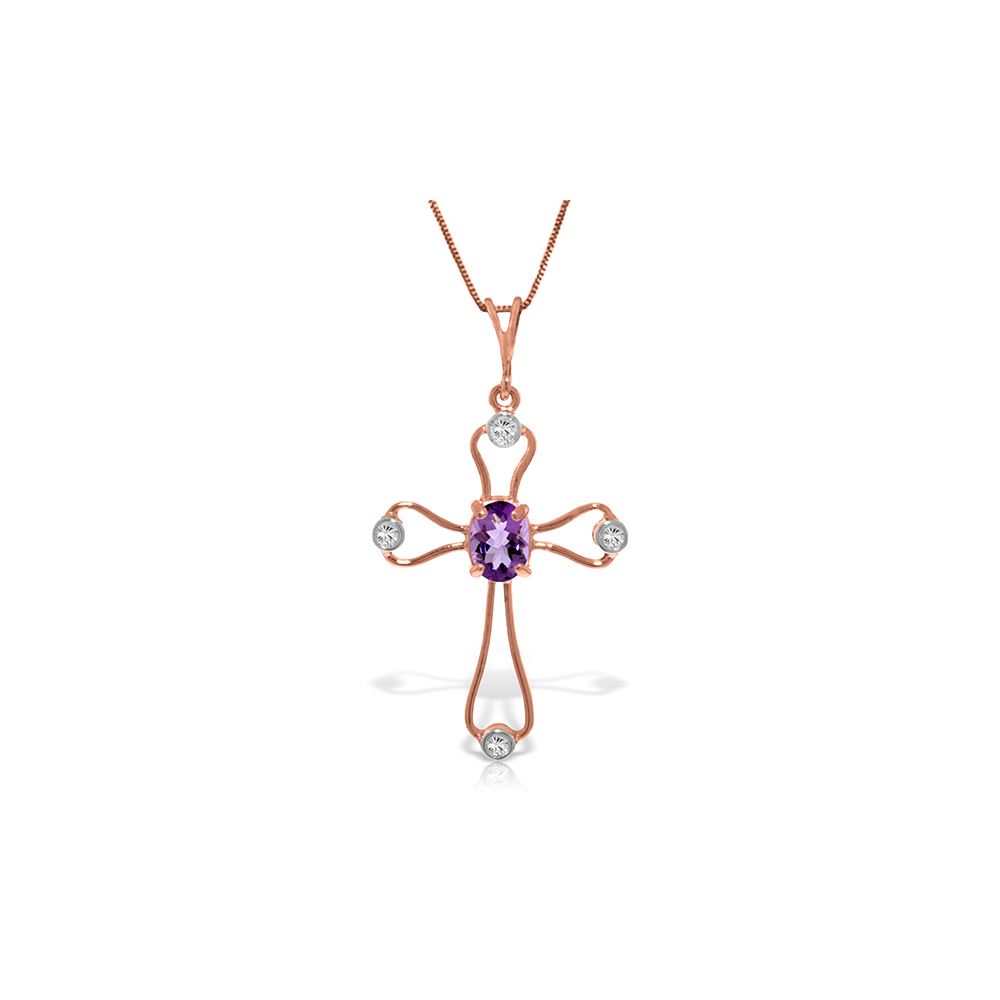 Genuine 14K Rose Gold 0.57 ctw Amethyst & Diamond Necklace