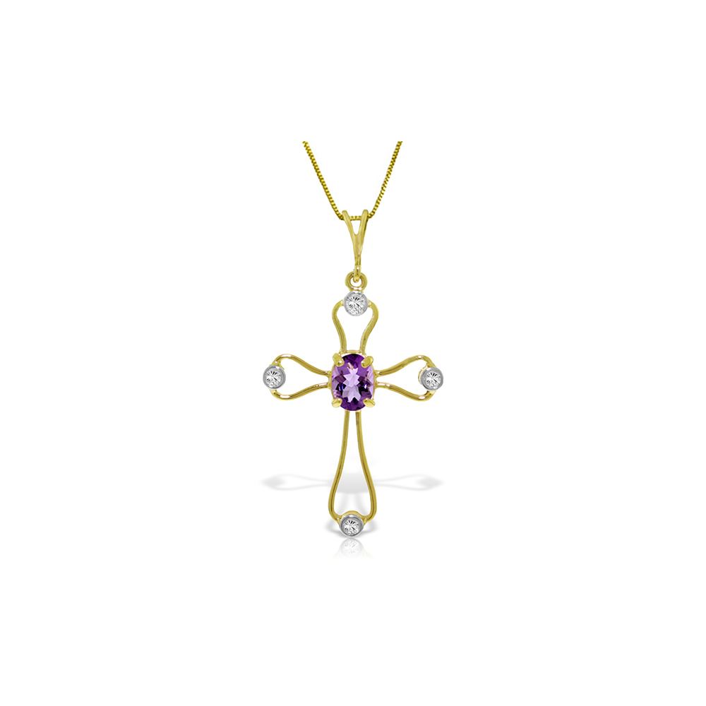 Genuine 14K Yellow Gold 0.57 ctw Amethyst & Diamond Necklace