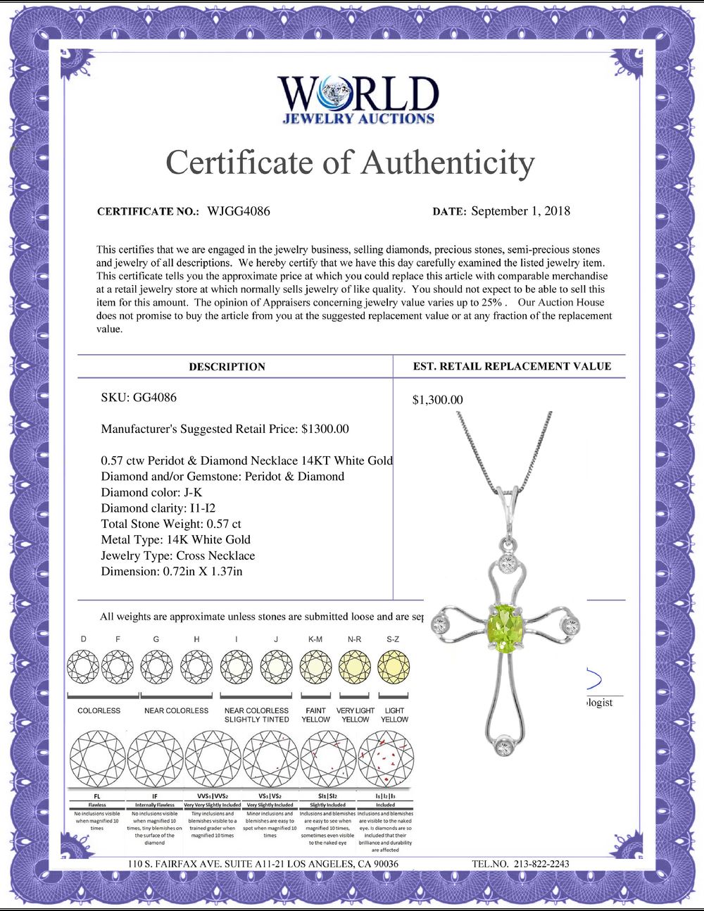 REF-40N8R - SKU: GG4086 ---- Genuine 0.57 ctw Peridot & Diamond Necklace 14KT White Gold