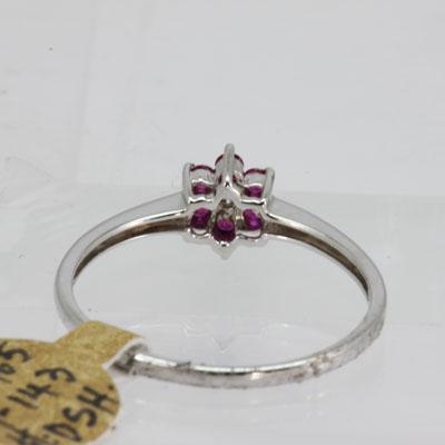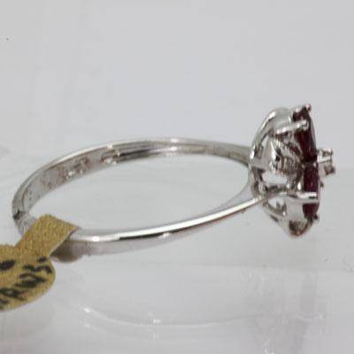 Gemstone: Ruby ; Gemstone Weight: 0.55 ; Diamond Count: 4RD ; Diamond Weight: 0.02; Metal Purity: 14KT ; Metal: White Gold ; Ring Size: 6.5