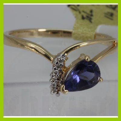 Main Stone: Iolite ; Carat Weight: 0.58ctw ; Gold Carat:14KT; Metal: Yellow Gold ; Ring Size: 7.5 ; Diamond Weight: 0.02 ; Gemstone Carat Weight: 0.56