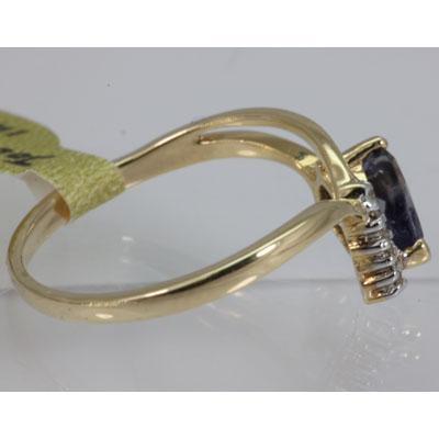 Main Stone: Iolite ; Carat Weight: 0.58ctw ; Gold Carat:14KT; Metal: Yellow Gold ; Ring Size: 7.5 ; Diamond Weight: 0.02 ; Gemstone Carat Weight: 0.56